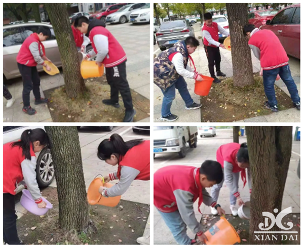 为了更好地让同学们从身边的小事做起,爱护树木,保护绿化,学校坚持五育并举的育人方针,在3月12日下午,组织六年级的同学们给校园的树木浇水。同学们热情高涨,提着水桶,分工合作、配合默契,浇灌一棵棵树苗。