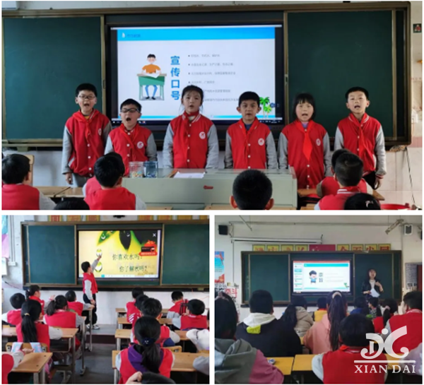 班队会课上,同学们认真学习了水资源的现状和节约用水的有关知识。各班班主任通过图片、播放视频、讲故事、互动等形式向孩子们介绍了世界水资源分布和中国水资源的现状,让他们认识到水是生命之源,她孕育着地球上的一切生命,她是提供人们日常生活和工农业生产的基础资源;认识到我国水资源分布严重不均;干旱对群众生活、生产和经济社会发展造成的严重影响……